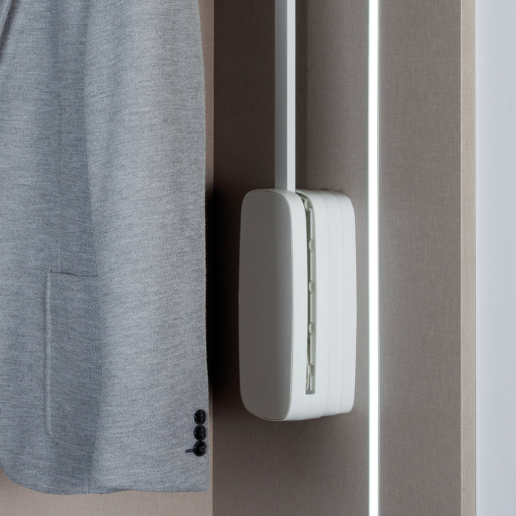 Die Seitenstärke des Sling-Kleiderbügels ermöglicht den Einbau des Kleiderbügels in Kleiderschränken mit Drehtüren . Es besteht aus Kunststoff und enthält die für die Installation erforderlichen Schrauben.