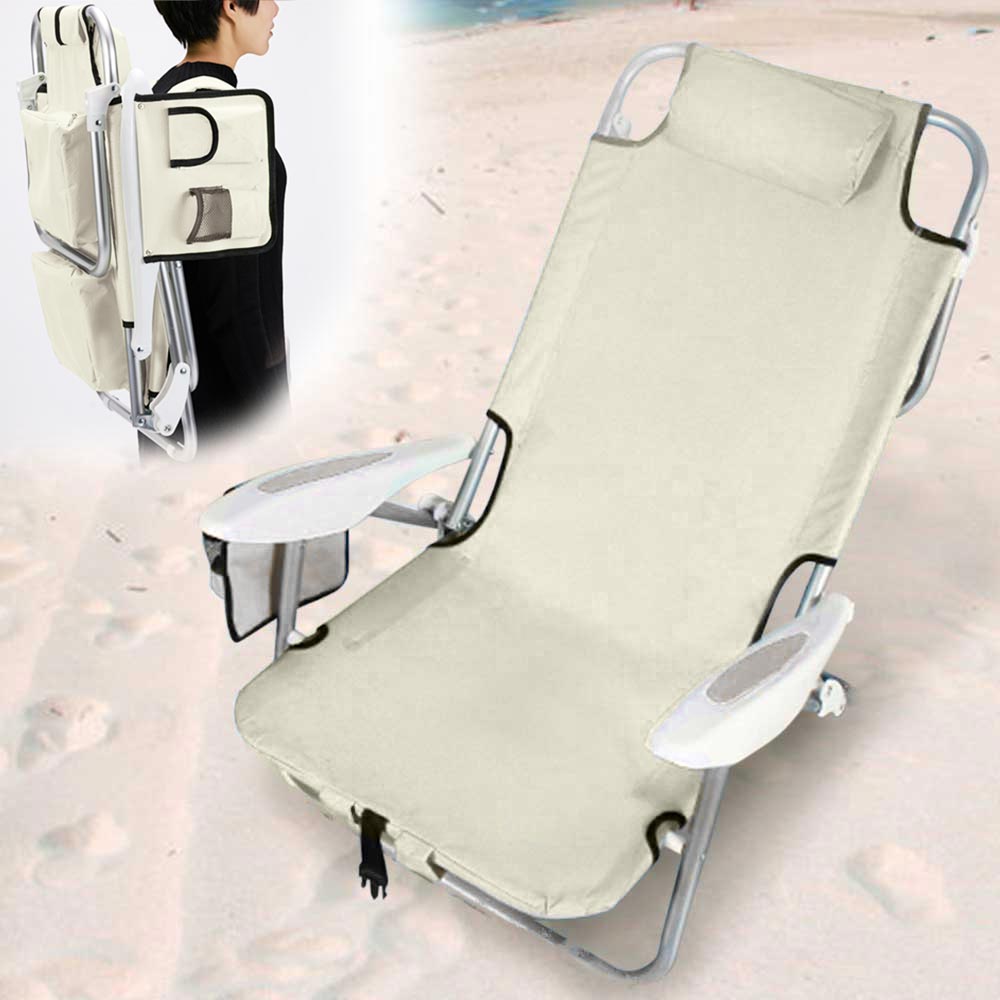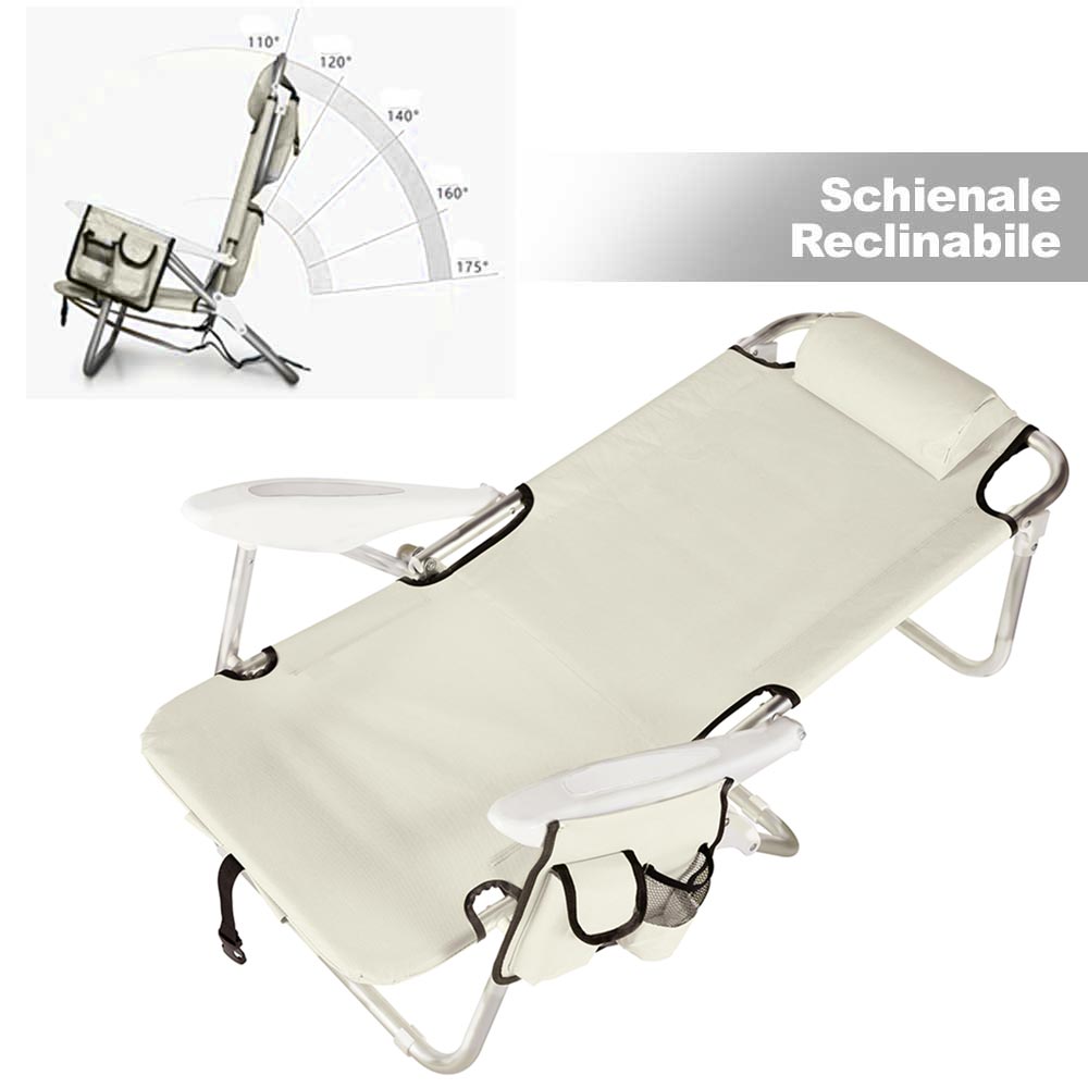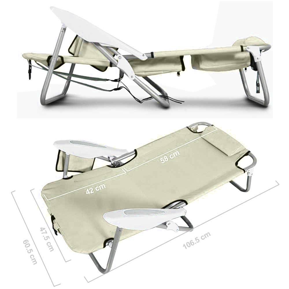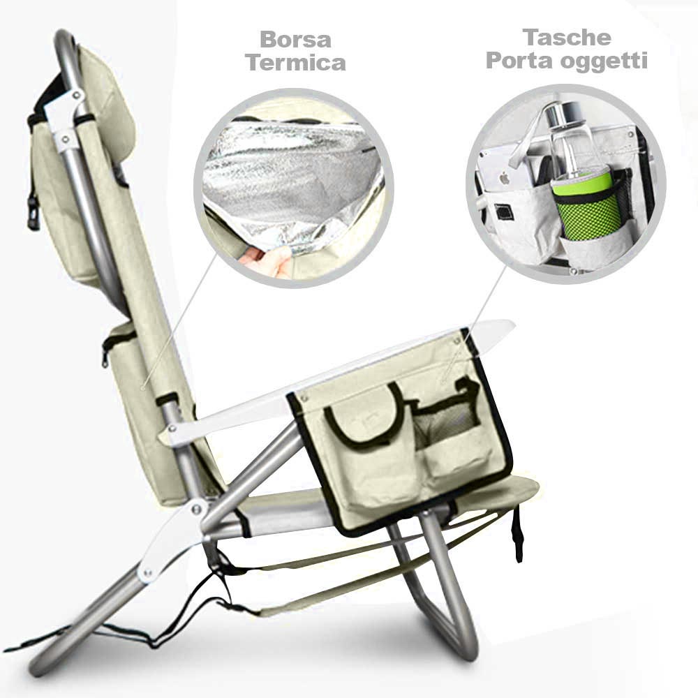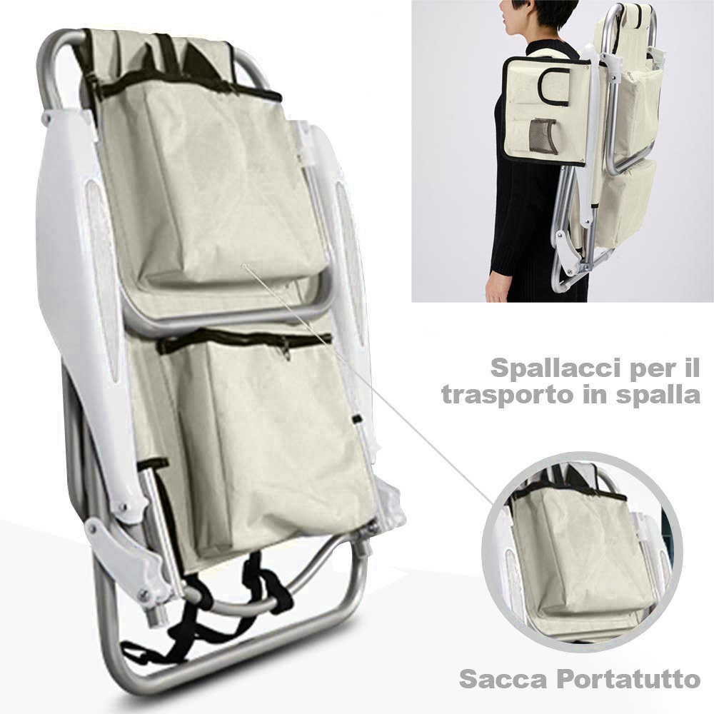 1 x Spiaggina Pieghevole Sedia Spiaggia Alluminio con Borsa Termica e Spallacci Beige