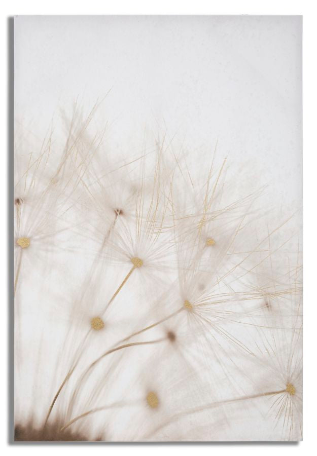 Questa stampa su tela con telaio in legno presenta un affascinante design floreale. I colori pastello delicati si fondono armoniosamente con le piccole decorazioni dorate, creando un contrasto sottile ma che aggiunge un tocco di brillantezza a qualsiasi ambiente. L'elegante telaio in legno enfatizza ulteriormente l'aspetto raffinato di questa creazione, rendendola una scelta perfetta per arredare con stile.