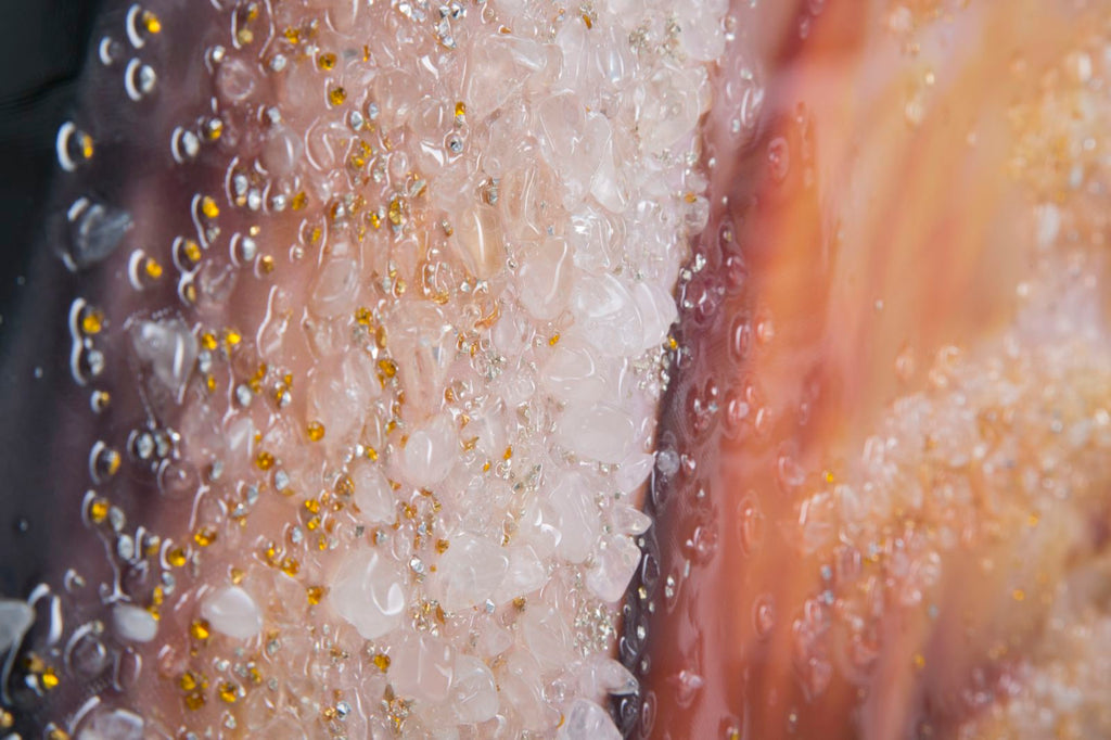 Druck auf Leinwand mit Holzrahmen. Majestätische Flamingos, die mit Perlglanzapplikationen verziert sind, schmücken die Wände Ihres Interieurs mit Stil