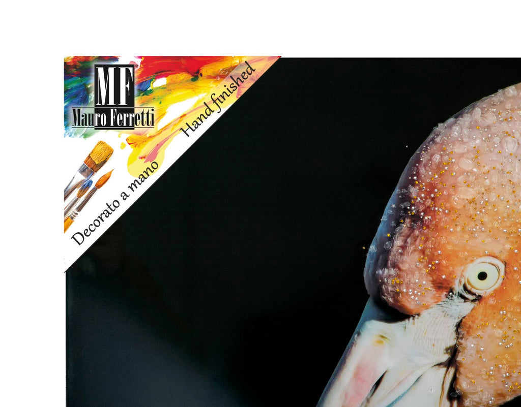 Druck auf Leinwand mit Flamingo-Applikationen 120x3,8x80 cm in Holz und Leinwand