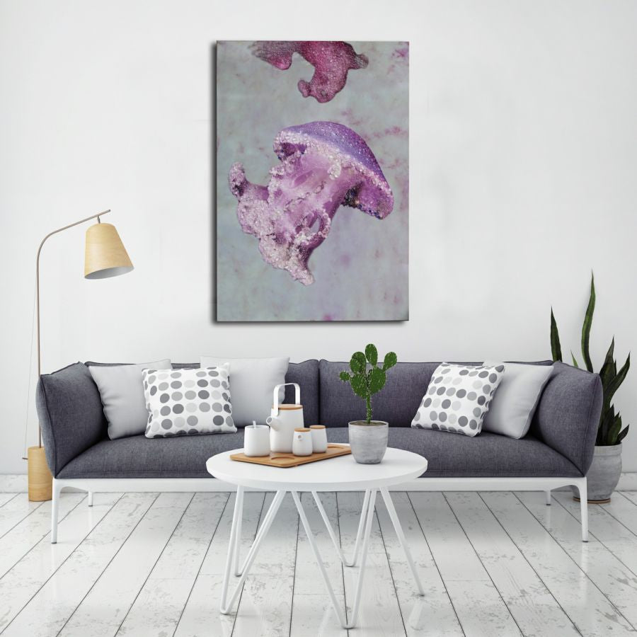 Druck auf Leinwand mit Holzrahmen. Die Schönheit der Meerestiere erobert die Wände des Hauses dank mit Perlen verzierter Drucke. Von Ihrem Wohnzimmer aus vom Meer träumen