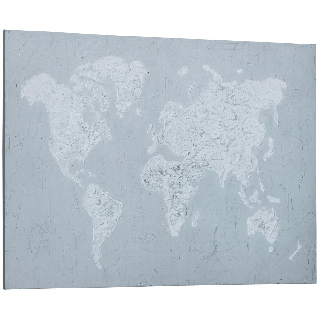 Druck auf Leinwand Welt 120 x 90 cm in grauem und weißem Kiefernholz