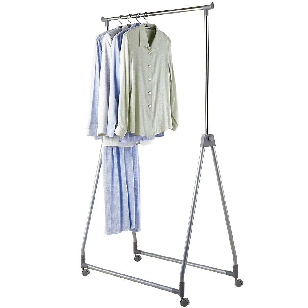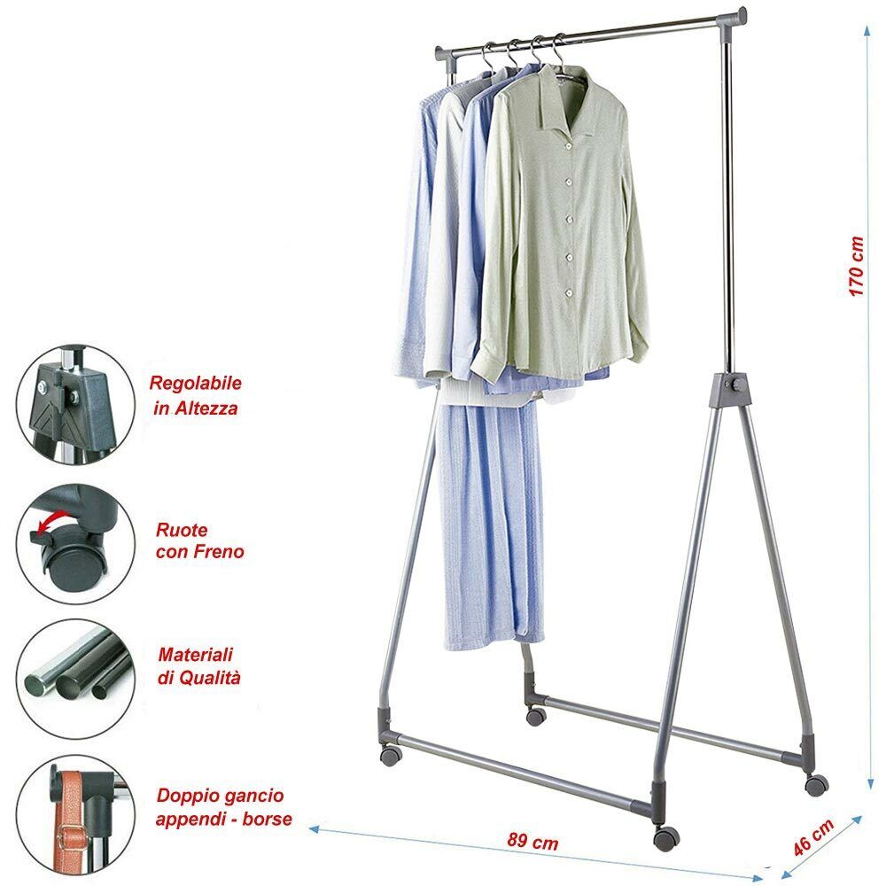 1 x Stand Appendiabiti Pieghevole Acciaio Asta Allungabile Regolabile Ruote Grigio