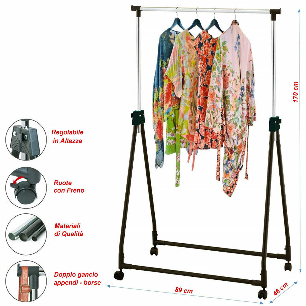 1 x Stand Appendiabiti Pieghevole in Acciaio Asta Allungabile Regolabile con Ruote