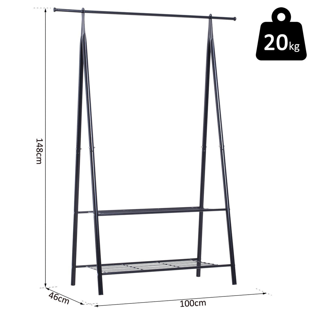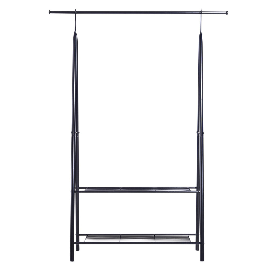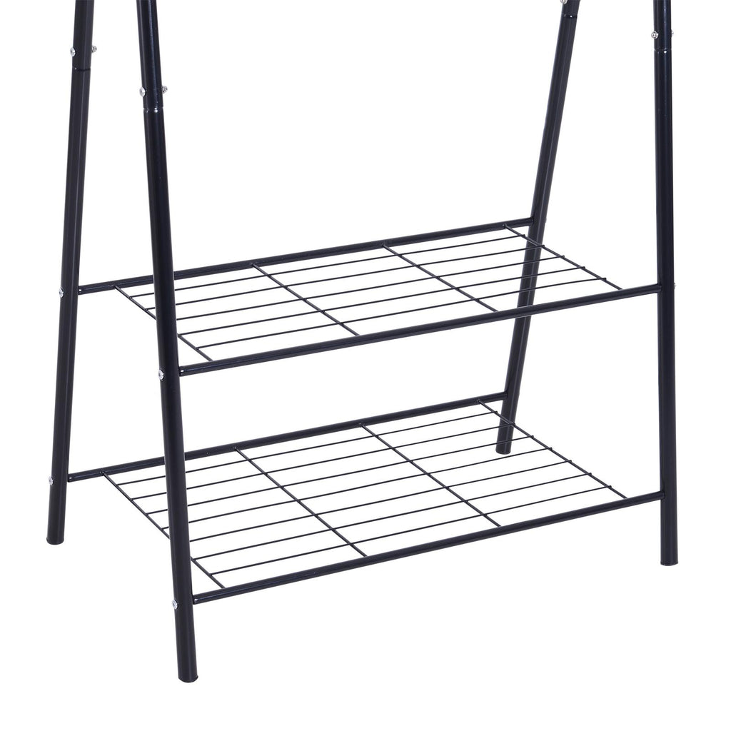 Stander Garderobe mit 2 Ablagen Schuhregal aus schwarzem, stabilem Stahl 100 x 46 x 148 cm