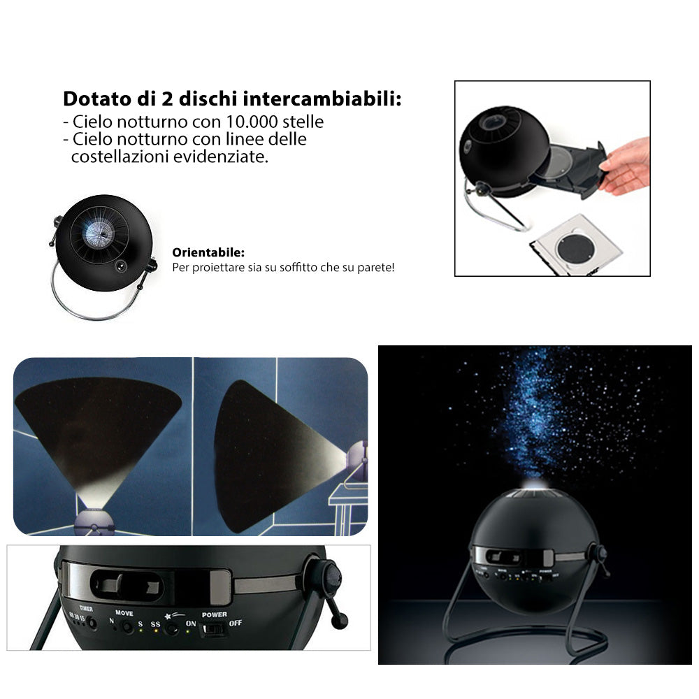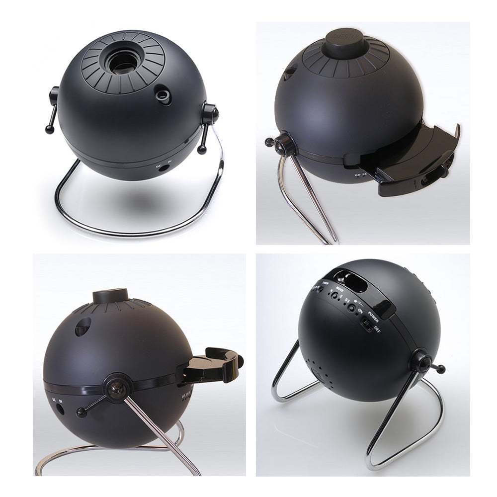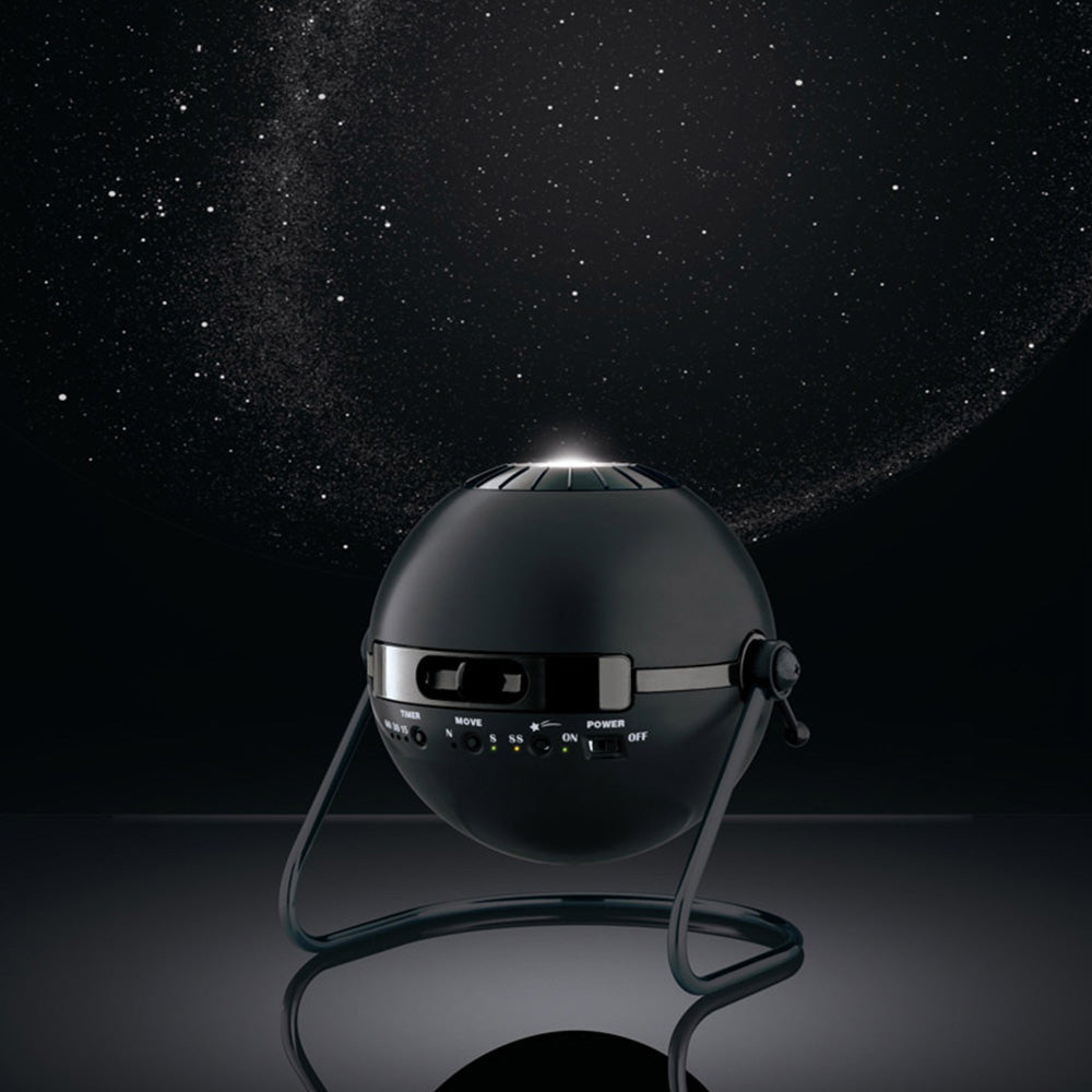 Ein authentisches tragbares Planetarium, das mit einem Drehwerk ausgestattet ist, mit dem Sie das Aussehen des Himmelsgewölbes im Laufe des Jahres reproduzieren können. Mit einstellbarem Abstrahlwinkel und Fokus, praktischem Auto-Shut-off-Timer und Sternschnuppenfunktion. Sternentheater: ein rigoroses Instrument des Wissens, ein raffiniertes High-Tech-Gerät, ein erstaunliches Firmament der Emotionen, ein innovatives System, das in Japan von Takayuki Ohira, dem Schöpfer professioneller Planetarien, entwickelt wurde.
