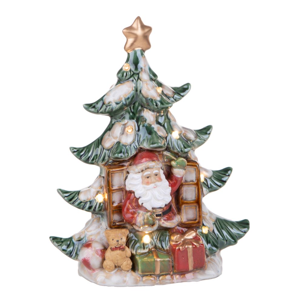 Statuina Babbo Natale con Albero con Led 27 cm in Porcellana