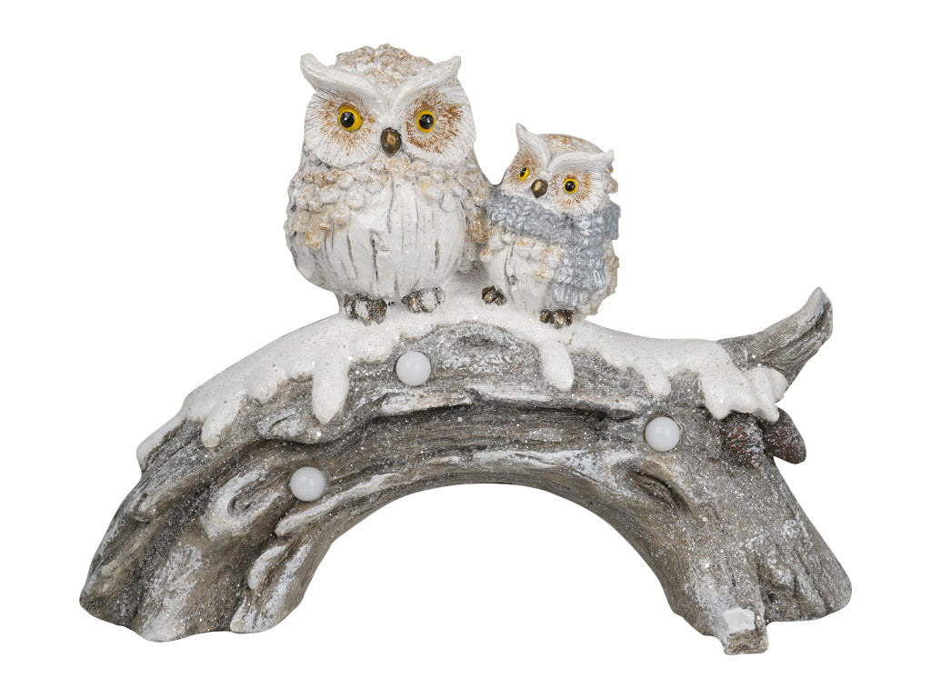 - Dekoration, die zwei Eulen auf einem Stamm mit Licht darstellt, um Ihr Zuhause besser zu beleuchten