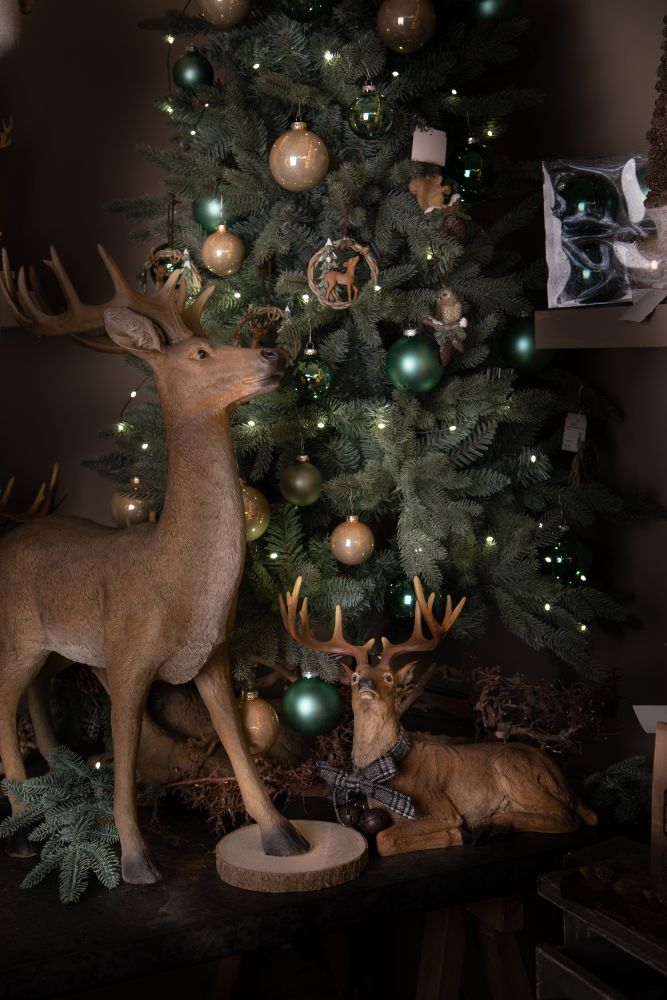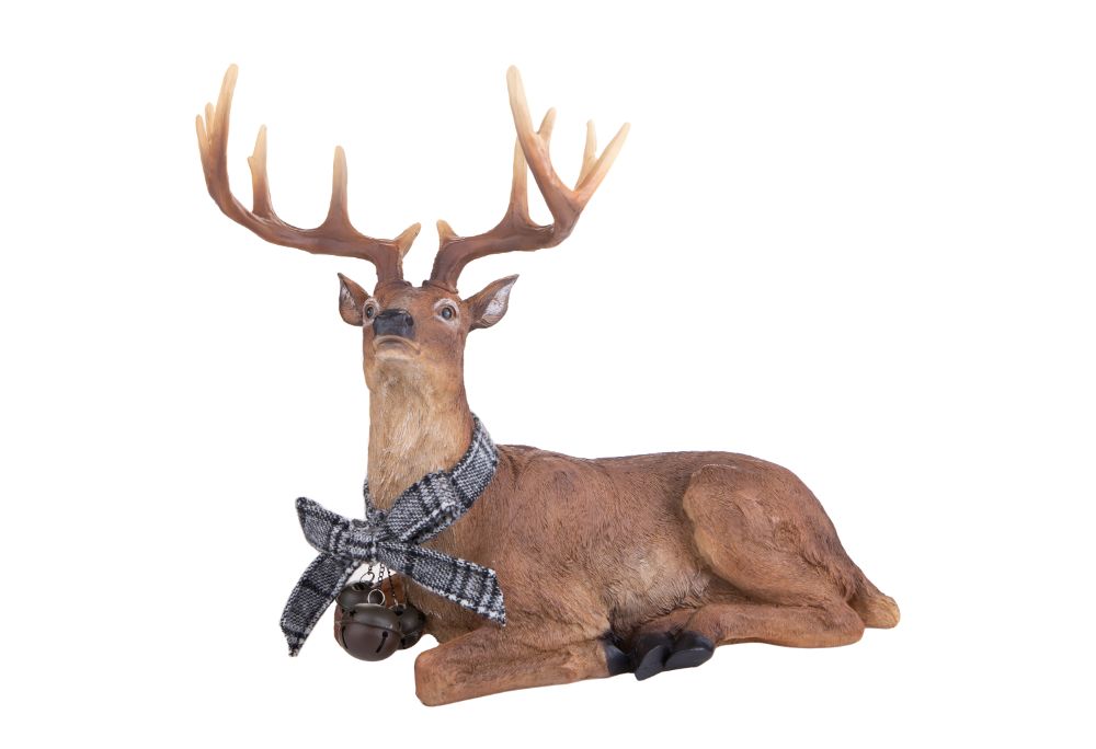 Statuina Renna Natalizia Seduta con Fiocco 34 cm in Resina