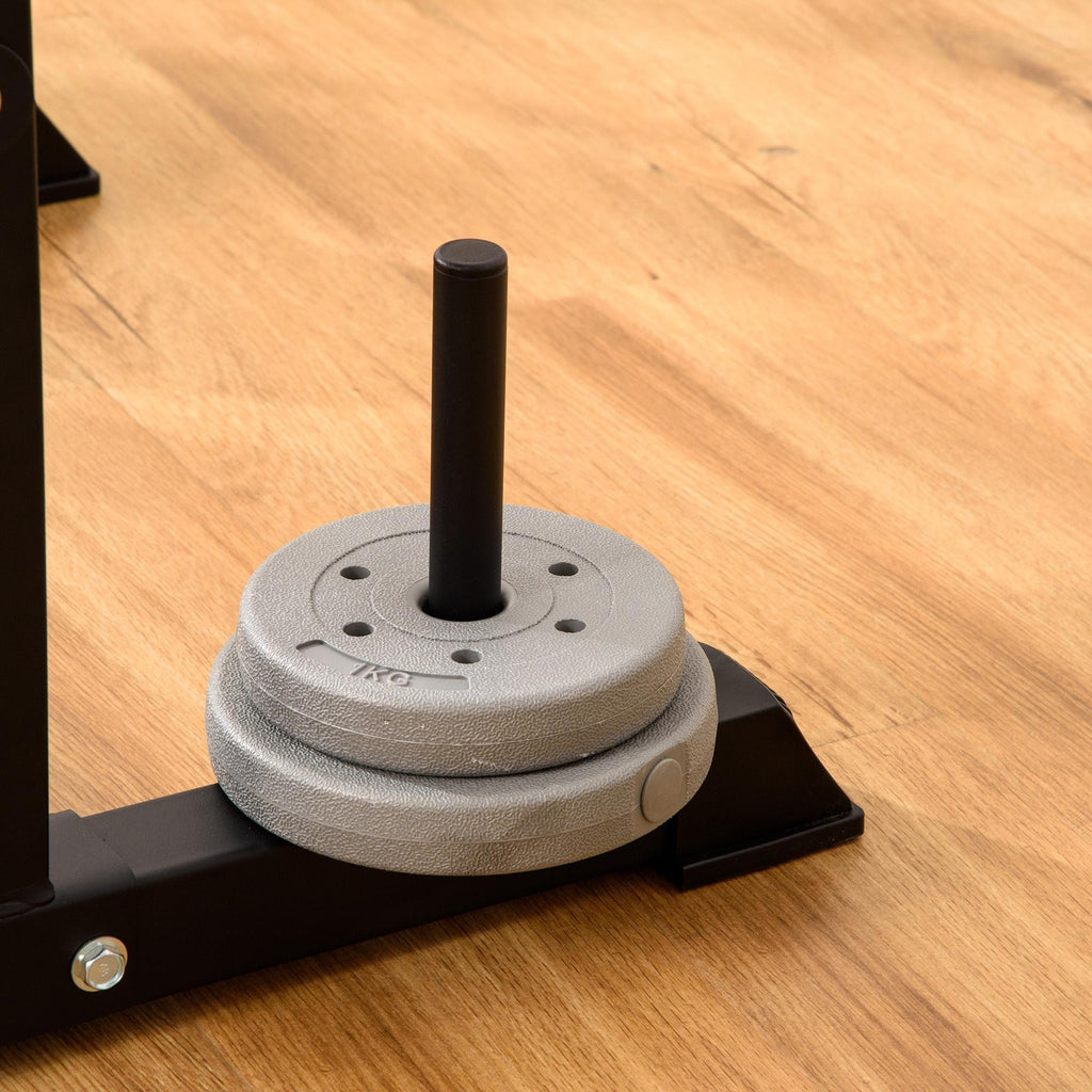 Mit dieser multifunktionalen Fitnessstation ist es einfacher, sich fit zu halten. Es wurde für das Training zu Hause entwickelt und ermöglicht es Ihnen, verschiedene Übungen durchzuführen, darunter Barren, Klimmzüge und Sit-ups. Der Power-Tower-Rahmen besteht aus Stahl und wurde entwickelt, um intensive Belastungen zu tragen und Ihnen maximalen Komfort während des Gebrauchs zu bieten: Die Polyurethan-Polsterung an den Griffen und Armlehnen macht das Training tatsächlich komfortabler.
