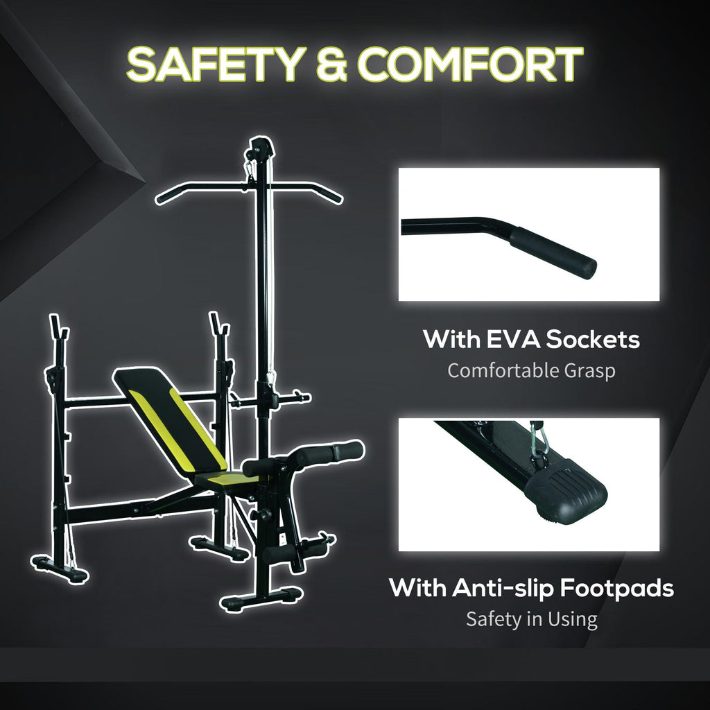 - ERHÖHTE SICHERHEIT: Integrierte Sicherheitshaken und Anti-Quetsch-Design verhindern das Verletzungsrisiko. Die Füße der Fitnessbank sind aus Gummi, um Ihnen beim Training optimale Stabilität zu geben. Hinweis: Gewichte sind NICHT enthalten.