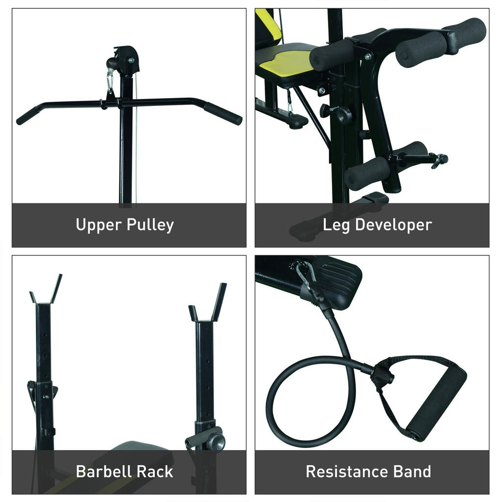- Klimmzugstange: Diese Fitnessbank verfügt über eine Klimmzugstange, um Kraft in Ihren Armen aufzubauen. Die kugelgelagerte Umlenkrolle ermöglicht ein optimales Anheben der Gewichte zur Durchführung von Pulldown-Übungen.