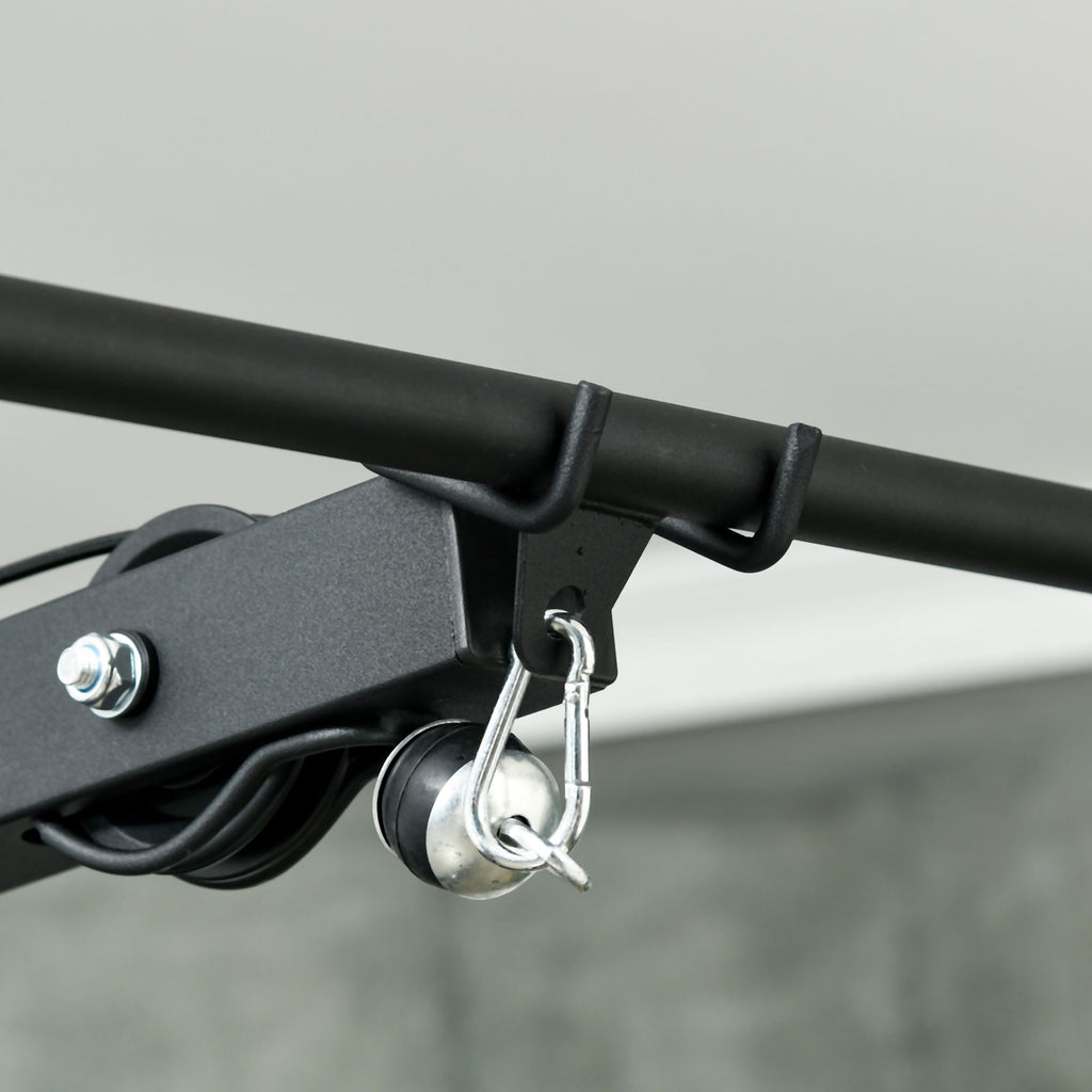 - INTENSITÀ REGOLABILE: La stazione fitness ha una barra per pesi di 2.5 cm/5 cm, un sistema di pulegge ideato per ospitare dischi pesi, garantendo maggiore comfort. Ti supporterà efficacemente lungo il tuo percorso di fitness (25 kg massimo per lato, 50 kg in totale)