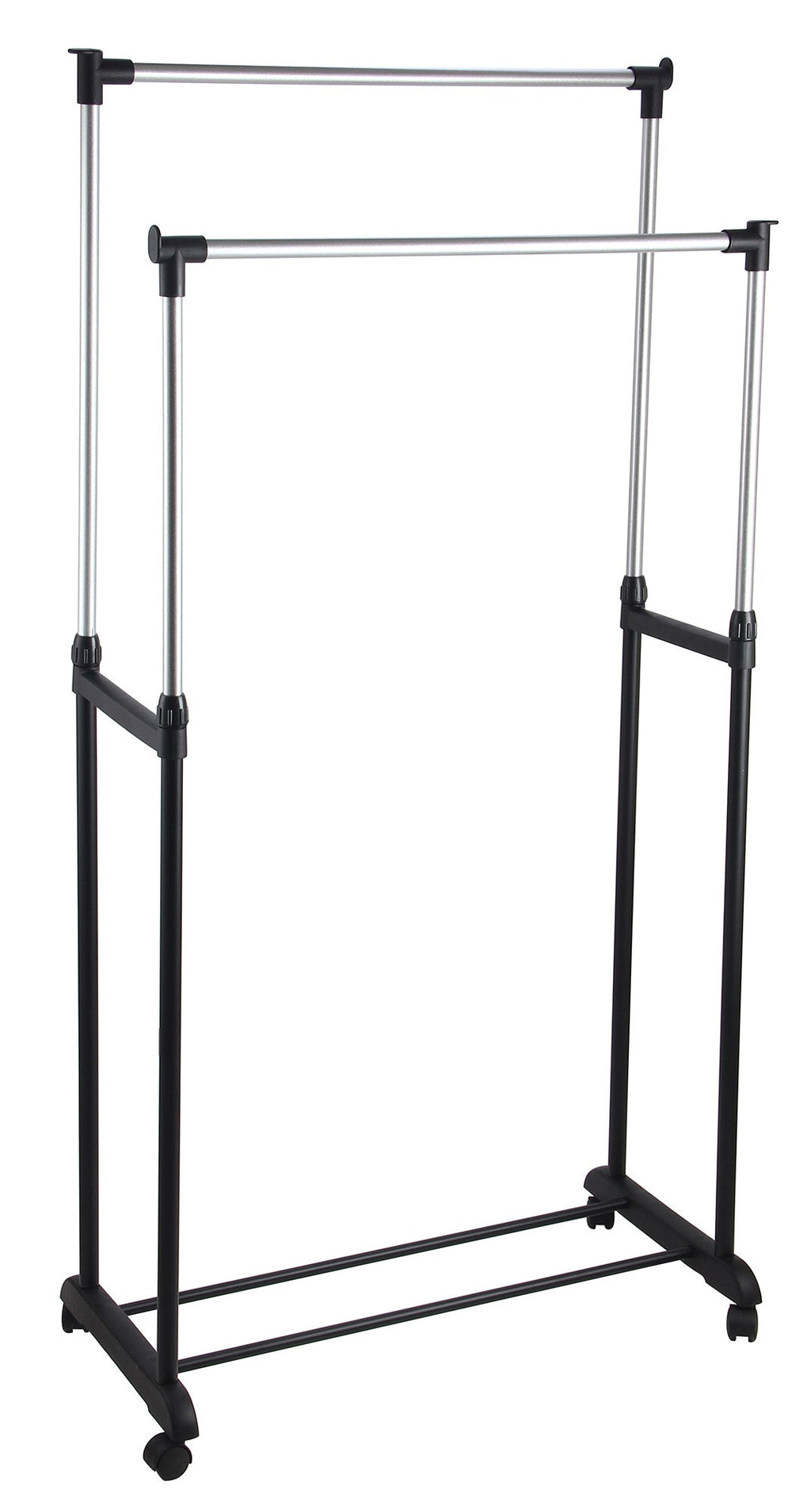 Doppelte Kleiderstange aus Stahl mit Rollen 80x170x42cm Fadi Schwarz und Stahl
