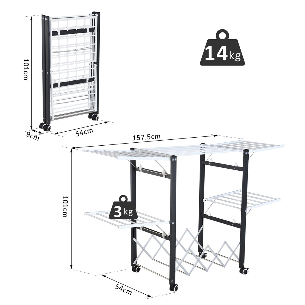Faltbarer Wäscheständer aus Aluminium und Kunststoff 157,5 x 54 x 101 cm
