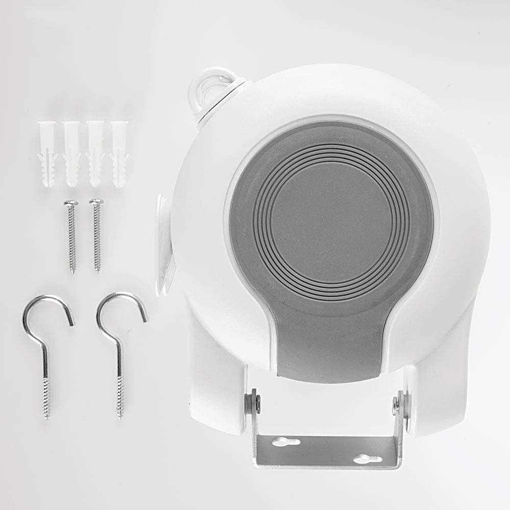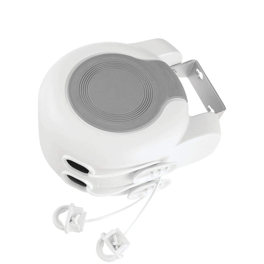 Der ausziehbare Wäscheständer nimmt sehr wenig Platz ein und ist für beide Linien auf bis zu 15 m ausziehbar, um ihn im Haus oder im Garten zu verwenden. Diese ausziehbare Wäscheleine wird einfach an der Wand befestigt, dank des mitgelieferten Montagezubehörs werden die Schnüre auf die gewünschte Länge gezogen und dann am anderen Ende mit einem Haken befestigt.