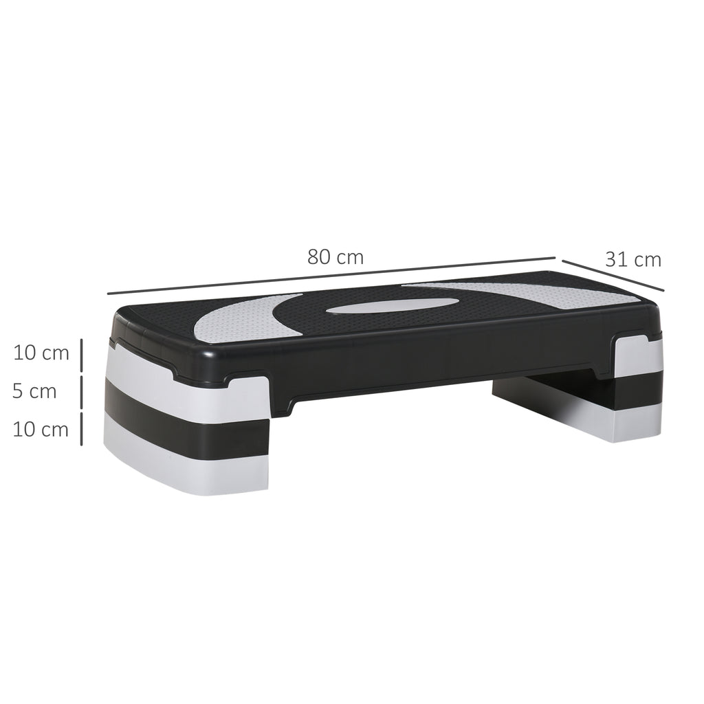 Professioneller Aerobic Fitness Step 80 x 31 x 20 cm Höhenverstellbar 10-20 cm Schwarz und Grau