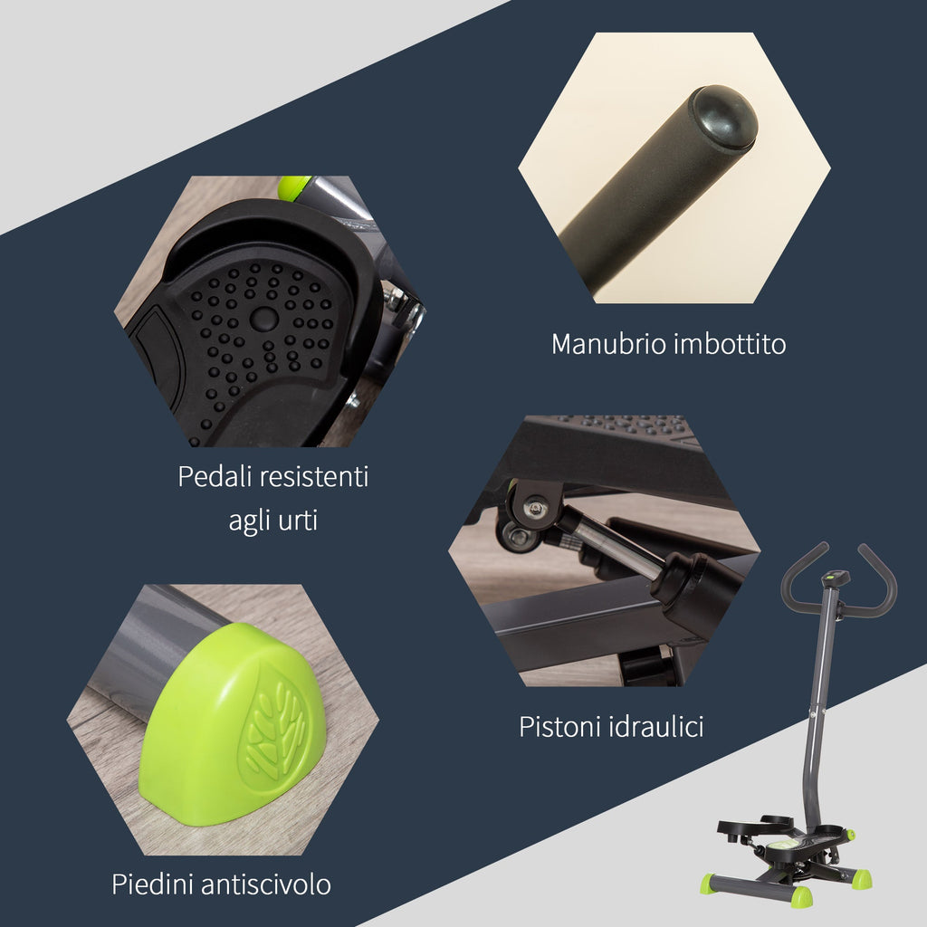 Stepper mit Lenkstange und LCD-Monitor aus Stahl und grauem und grünem ABS