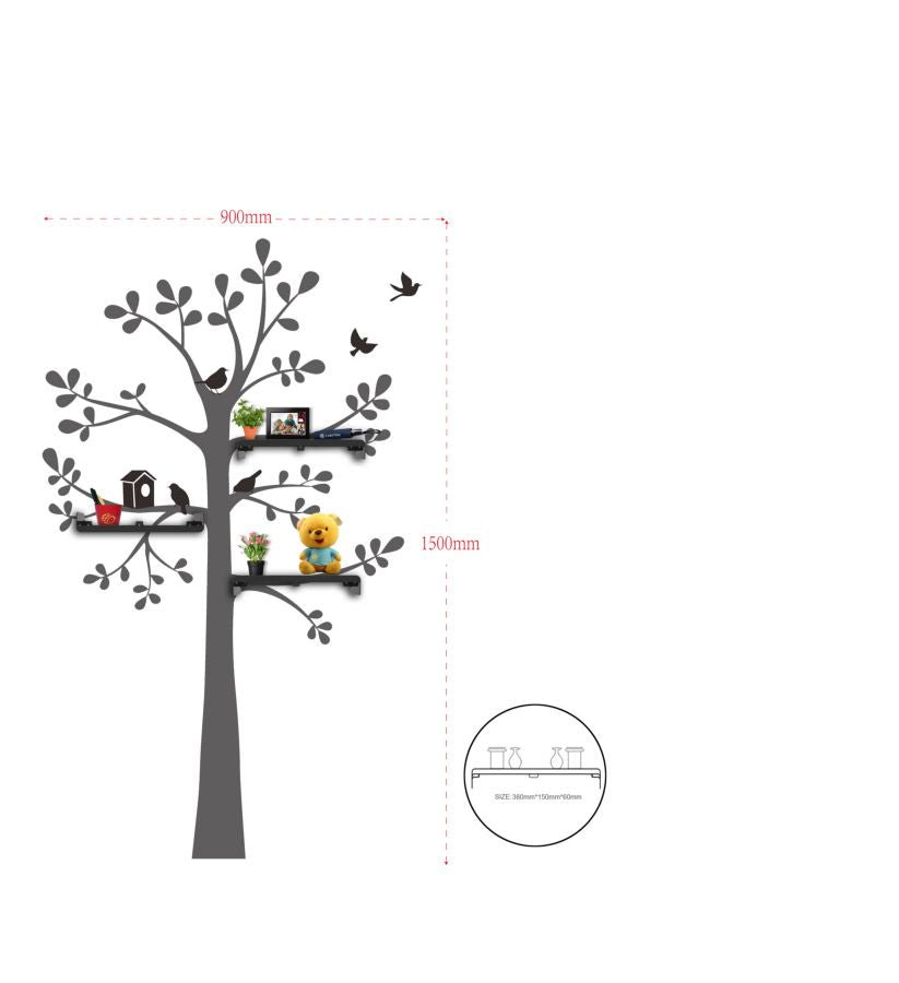Wandtattoo Baum mit Ablagen 90x150 cm Kunststoff
