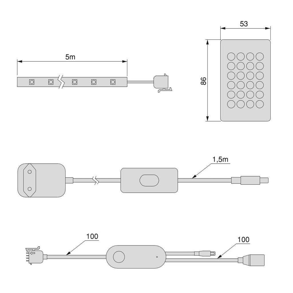 Octans 5m 12V Multicolor RGB LED-Streifen mit WLAN-Steuerung über die App mit Emuca-Fernbedienung