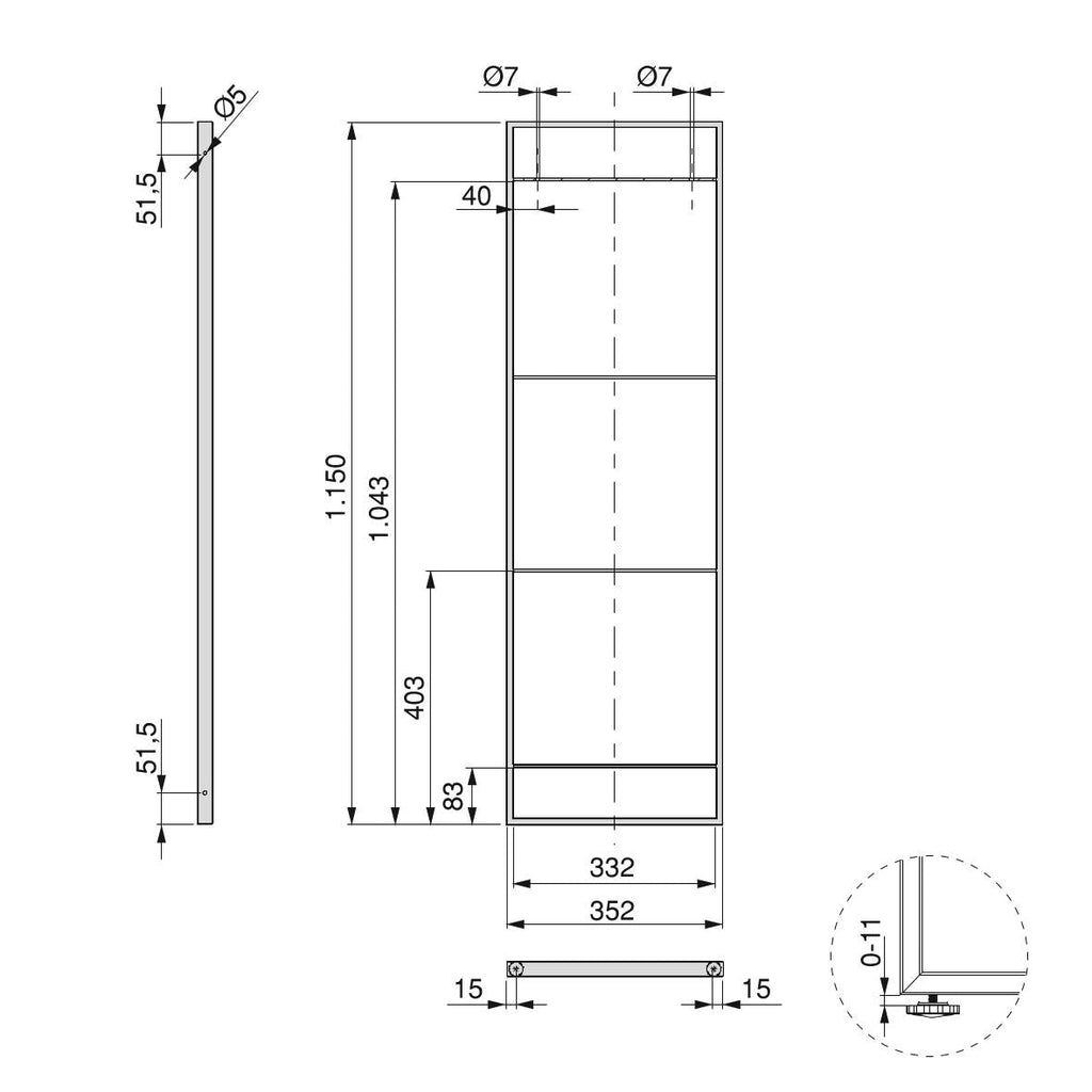 - Die 1150 mm hohe und 350 mm breite Struktur ermöglicht eine große Lagerkapazität.
