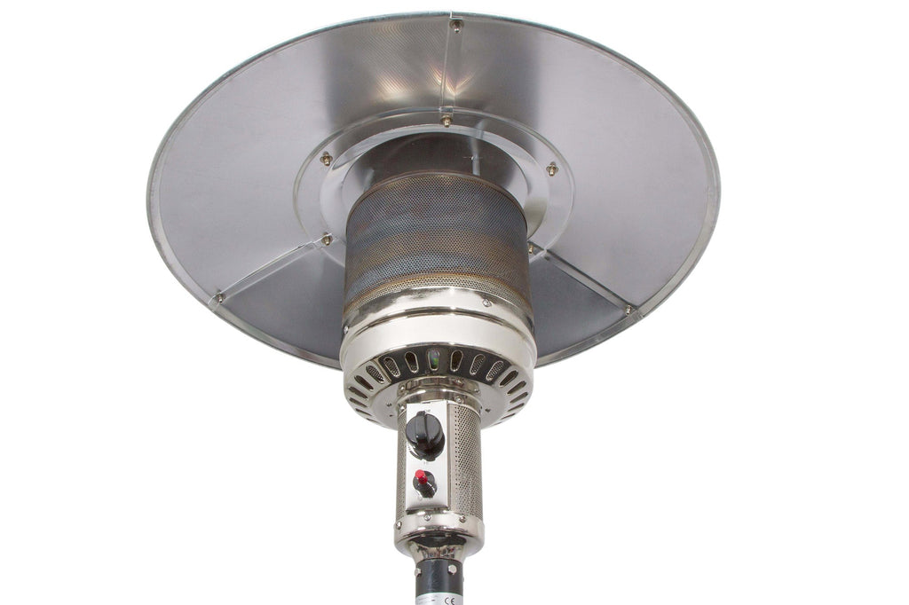 Das Terrassenmodell PGU 2013 ist ein leistungsstarker Gasofen, der Terrassen, Veranden oder Pavillons schnell beheizt, um sofort eine intime und komfortable Wärme zu haben. Die Leistung von 5.000 bis 13.000 Watt ermöglicht je nach Wetterlage das Beheizen von Außenbereichen unter einer Überdachung von bis zu 110 m². Sie können bis spät in die Nacht draußen bleiben, auch wenn es kühler wird. Der Terrassenofen ist praktisch und sicher, er ist auf Rädern montiert, um ihn einfach und bequem bewegen zu können, und er ist kippsicher. Die 15-kg-Propan- oder Butanflasche ist einfach und sicher auszutauschen
