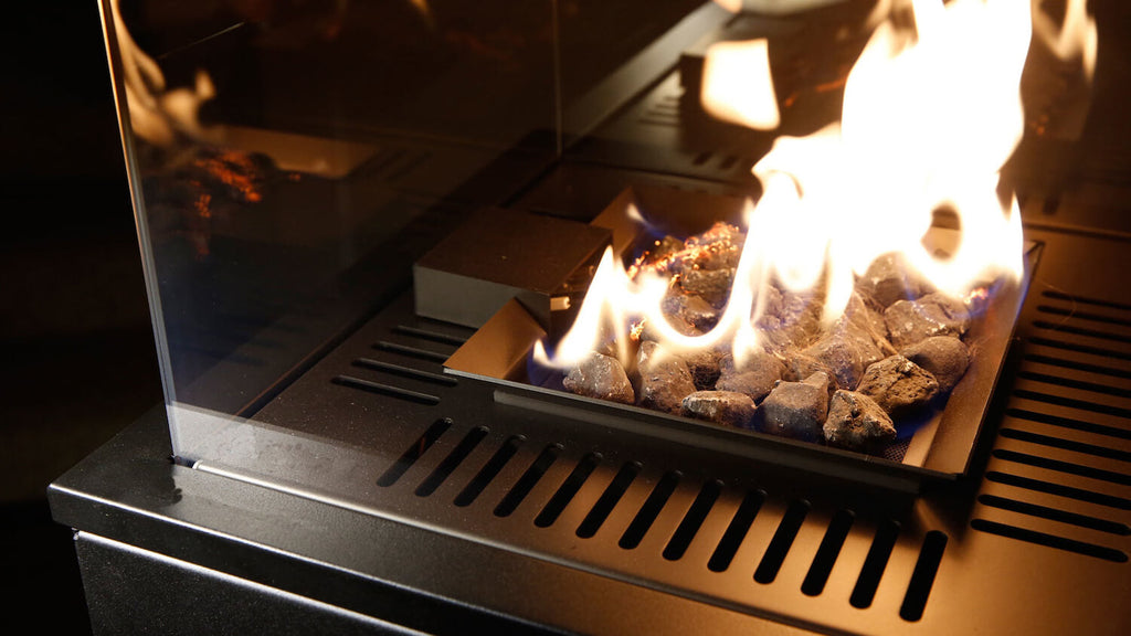 Die Flammen sind in einer Glaskammer eingeschlossen, die uns vor direktem Kontakt mit dem Feuer schützt. So genießen Sie den visuellen Effekt der Flammen und behalten dabei alles unter Kontrolle.