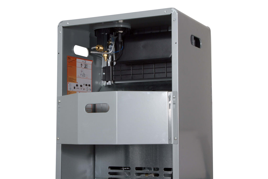 Der Gasofen vereint das Beste aus Gasheizung und Elektroheizung. Es kann mit Gas, Strom oder beidem betrieben werden. Bei diesem Modell können Sie 3 verschiedene Gasleistungen (kW 1,5 - 2,8 - 4,1) und zwei elektrische Leistungen (kW 0,9 - 1,8) auswählen. Wie alle Qlima-Öfen ist sein Betrieb sicher. Es ist in der Tat mit einem Sauerstoffsensor und einem Umkippsystem ausgestattet. Mit der piezoelektrischen Zündung ist es auch sehr einfach, das Gerät anzuzünden.