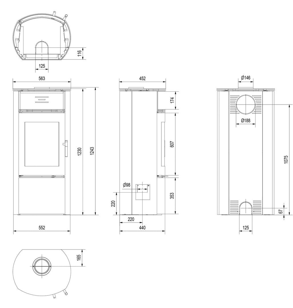 Technische Merkmale Holzofen 10KW in Steel Flig Fremont Black