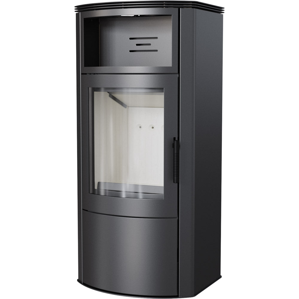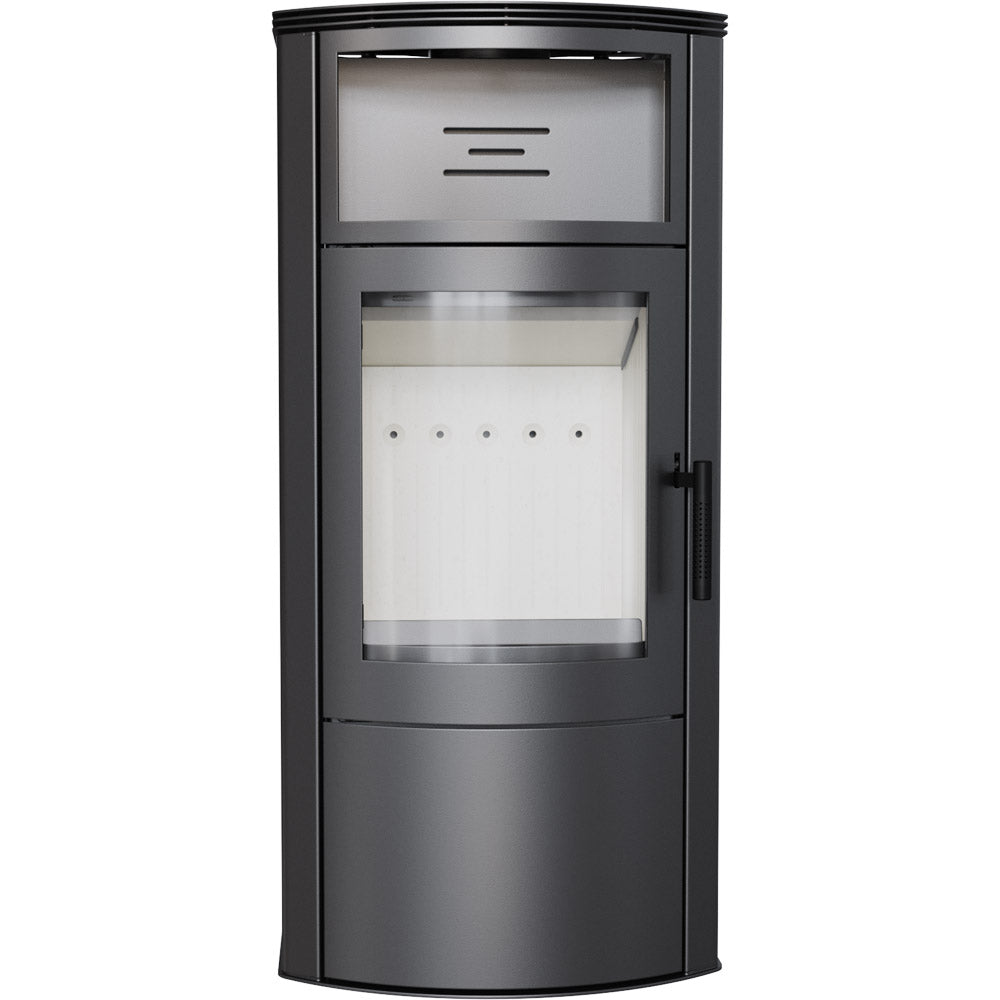 Freistehender Kaminofen aus Stahl mit abgerundeter Front, die es Ihnen ermöglicht, das Feuer von verschiedenen Seiten zu sehen. Es ist eine großartige Lösung für Menschen, die sich nach Wärme sehnen, aber nicht viel Platz in sich haben. Moderne technische Lösungen sorgen für eine wirtschaftliche und umweltfreundliche Verbrennung.