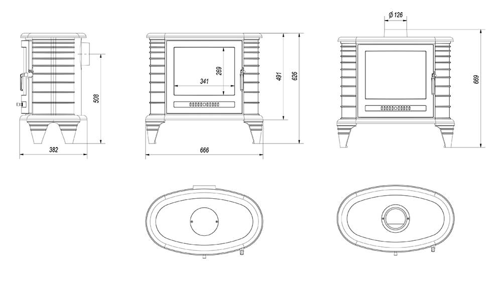 Dank des einstellbaren Abgasauslasses kann er unter verschiedenen Montagebedingungen verwendet werden: hinter oder über dem Ofen.