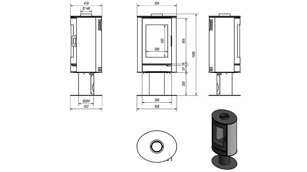 Möglichkeit der Verwendung in verschiedenen Montagebedingungen dank des einstellbaren Abgasauslasses: Rückseite oder Oberseite des Ofens (für den Kauf der oberen Abdeckung der Platte muss die Rückseite des Ofens installiert werden).
