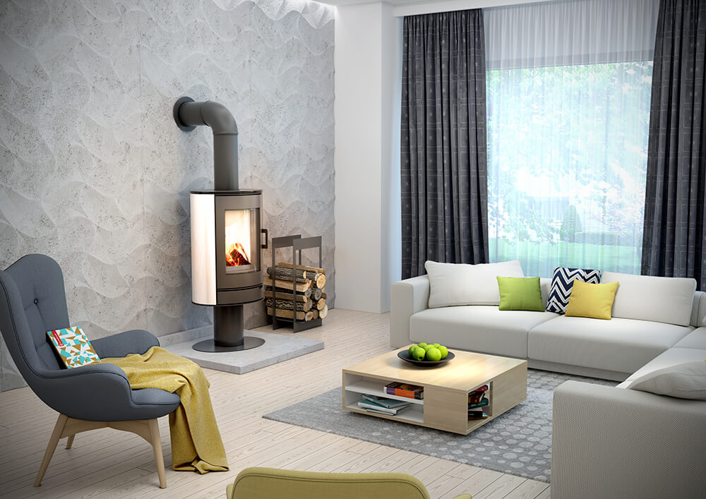 Effiziente Verbrennung und längere Temperaturerhaltung dank der Brennkammerauskleidung aus Acumotte - einem Material, das Wärme speichert und somit die Temperatur in der Kammer erhöht.