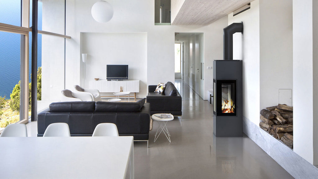 DESIGNMODELLDie Dreifachverglasung bringt das Feuer zum Glühen und macht die Atmosphäre wärmer, das Dekorglas unterstreicht seinen Charme.