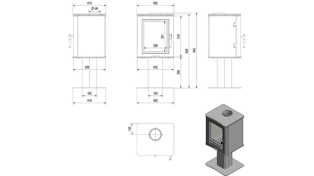Möglichkeit der Verwendung in verschiedenen Montagebedingungen dank des einstellbaren Abgasauslasses: Rückseite oder Oberseite des Ofens (für den Kauf der oberen Abdeckung der Platte muss die Rückseite des Ofens installiert werden).