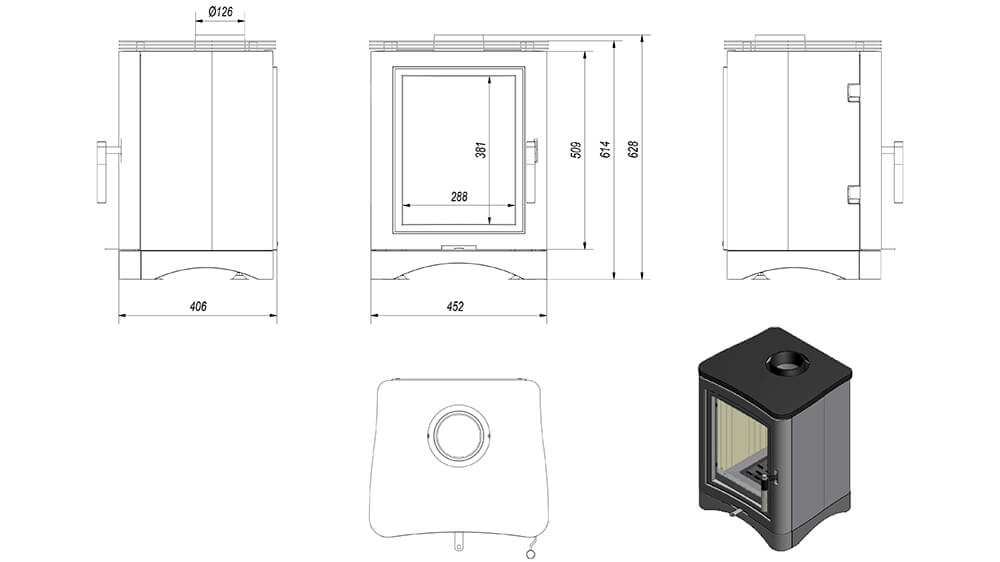 Möglichkeit der Verwendung in verschiedenen Montagebedingungen dank des einstellbaren Abgasauslasses: Rückseite oder Oberseite des Ofens (für den Kauf der oberen Abdeckung der Platte muss die Rückseite des Ofens installiert werden).
