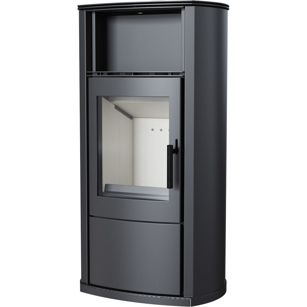 Freistehender Kaminofen aus Stahl mit abgerundeter Front, die es Ihnen ermöglicht, das Feuer von verschiedenen Seiten zu sehen. Es ist eine großartige Lösung für Menschen, die sich nach Wärme sehnen, aber nicht viel Platz in sich haben. Moderne technische Lösungen sorgen für eine wirtschaftliche und umweltfreundliche Verbrennung.