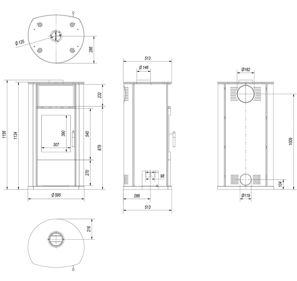 8KW Kaminofen aus Stahl 59,5 x 115,6 x 51,3 cm Flig Midland Schwarz