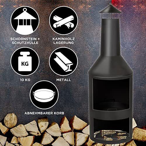 Questomoderno caminetto da patio con canna fumaria garantisce lo scarico del fumo dall'alto. Questo impedisce che ti entri in faccia mentre ti godi l'aria fresca.