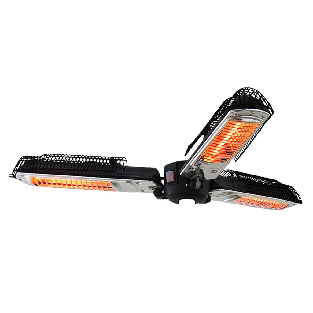 - EINSTELLBARER WINKEL: Die 3 Halogen-Heizlampen können vertikal von 0 bis 90° eingestellt werden.