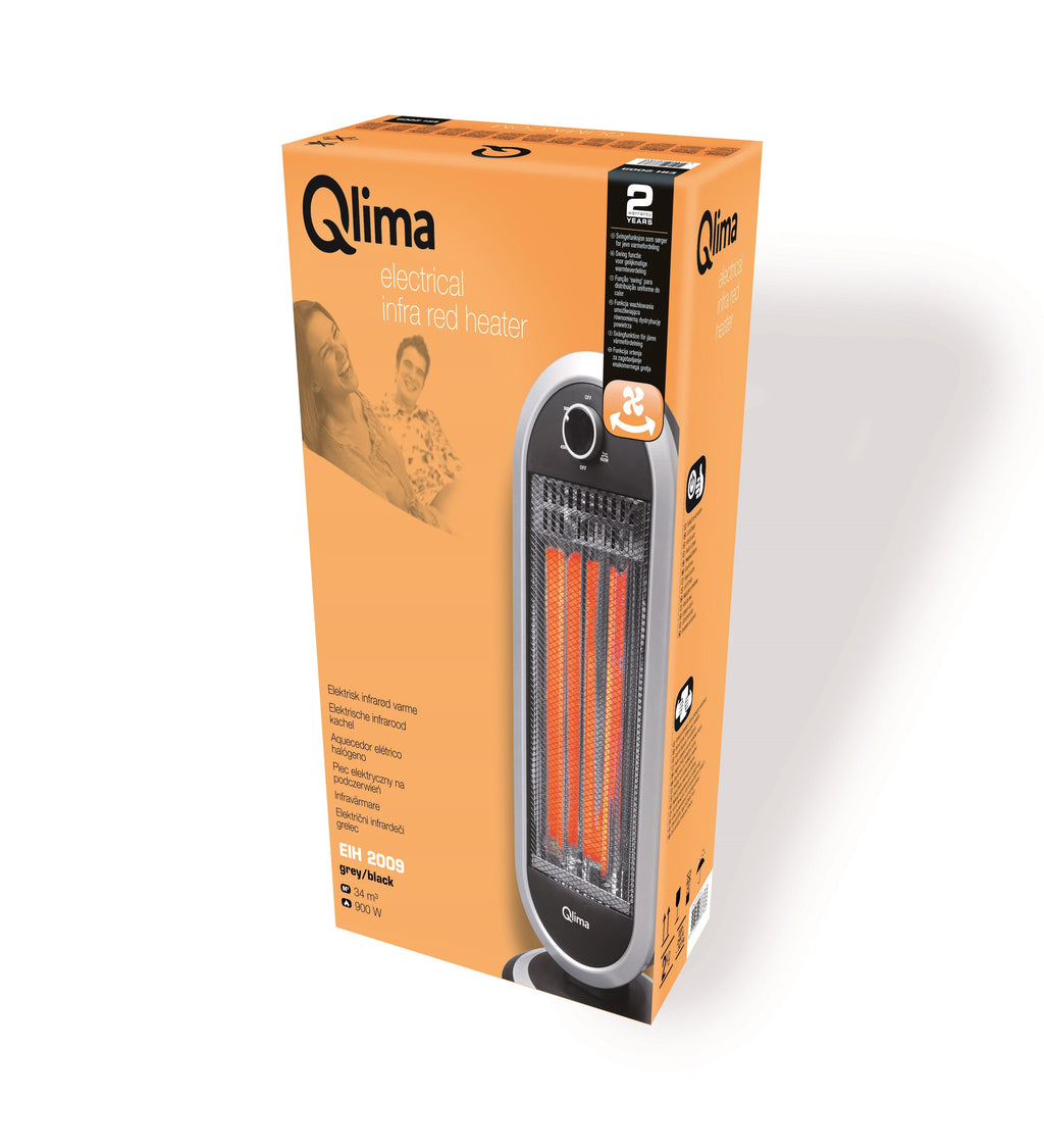 Stufa Alogena 900W 3 Elementi Qlima EIH 2009 Oscillante Nero