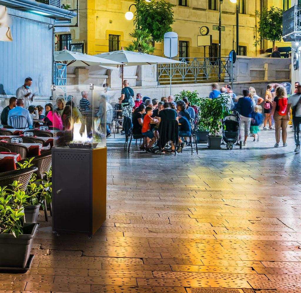 Eine Gasfeuerstelle mit unverwechselbarem Charme, perfekt für jede Art von Umgebung und Situation. Seine lineare und minimalistische Form passt sich jedem Möbelstück an. Ein vielseitiges und komfortables Gerät, das dank der Räder mit Sicherheitsarretierung leicht zu bewegen ist.