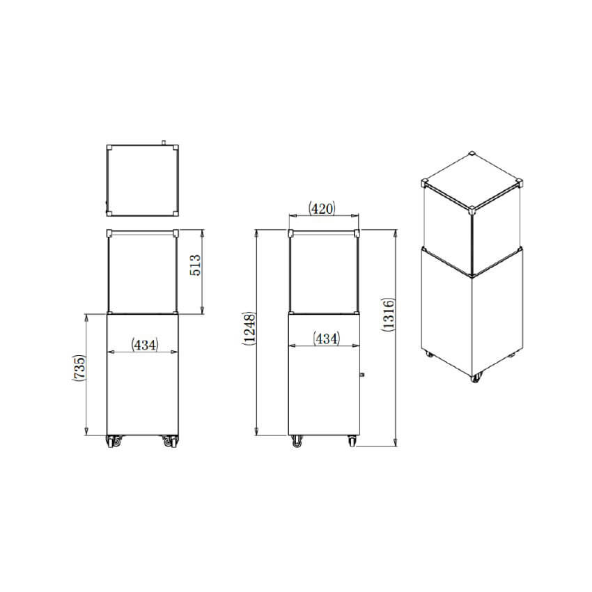 - Abmessungen (LxBxH): 43,4 x 43,4 x 131,6 cm
