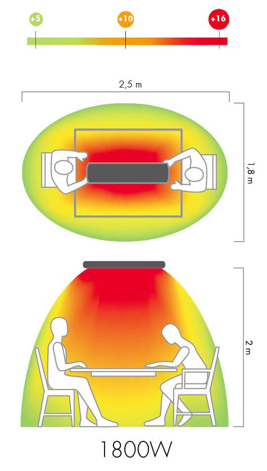 Menschen an Orten wie Restaurants oder Bars aufwärmen. Auch für längere Zeit wärmt es umhüllend und angenehm.
