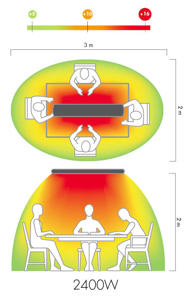 Menschen an Orten wie Restaurants oder Bars aufwärmen. Auch für längere Zeit wärmt es umhüllend und angenehm.