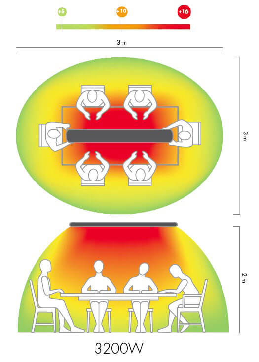 Menschen an Orten wie Restaurants oder Bars aufwärmen. Auch für längere Zeit wärmt es umhüllend und angenehm.
