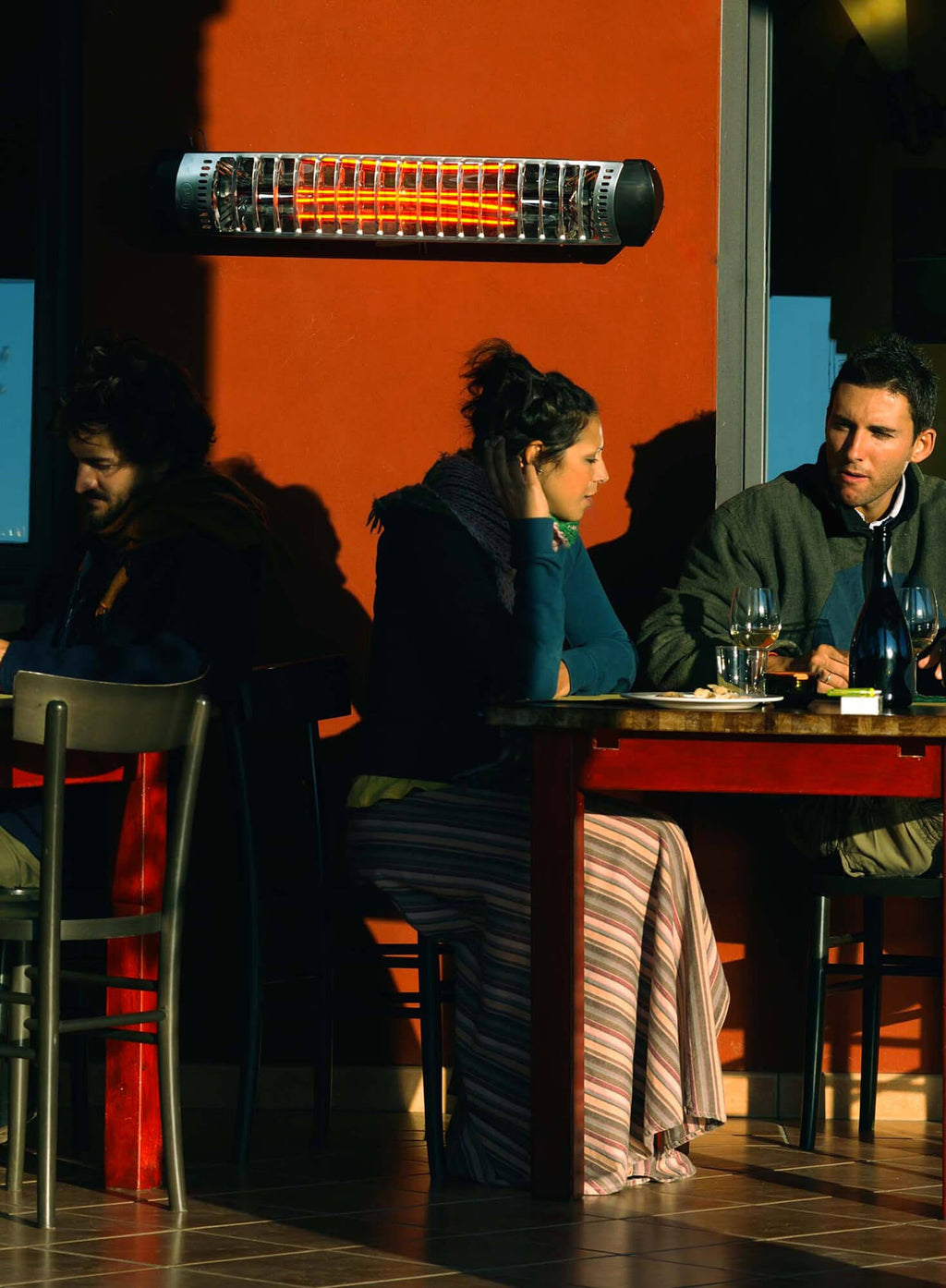 - Beheizung von Personen in Außenbereichen, Durchgängen, Cafés, Restaurants