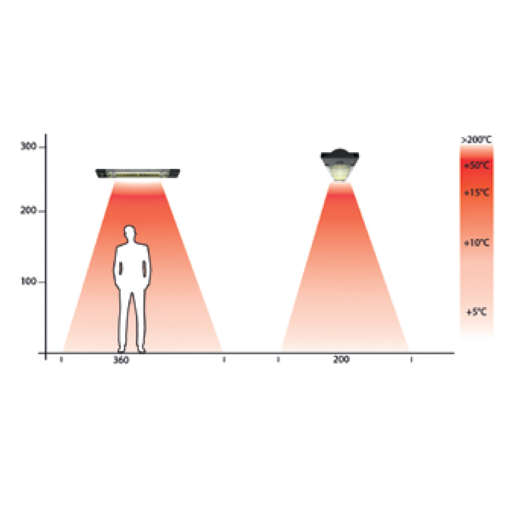 L’irraggiamento delle lampade al carbonio, toccando una porzione più alta dello spettro elettromagnetico, fornisce un calore più soft, meno superficiale e più piacevole.