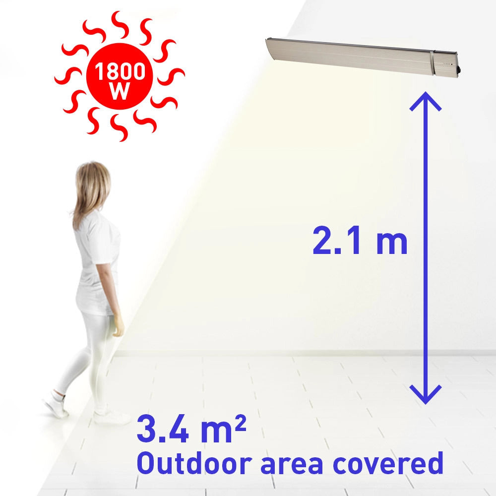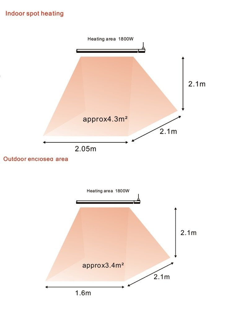 - Hervorragende Infrarotheizung funktioniert am besten in sehr geschützten und windstillen Außen- oder Innenbereichen, wie z. B. Wintergärten